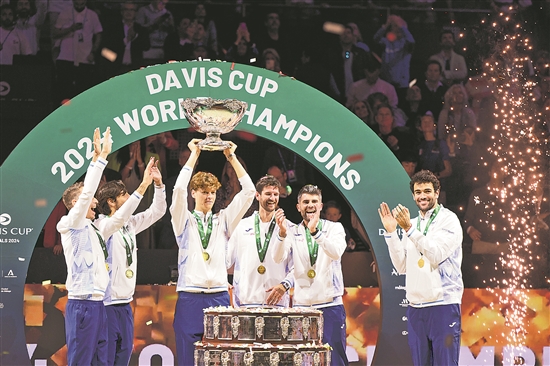 2024戴维斯杯男子网球团体赛决赛近日在西班牙马拉加举行,意大利队在男单世界第一辛纳的带领下,以2比0战胜荷兰队,连续第二年捧杯。在此前进行的2024比利·简·金杯女子网球团体赛决赛中,意大利队以总比分2比0战胜斯洛伐克队,获得冠军。这也意味着意大利队包揽了本赛季男女两项国家队赛事的冠军。