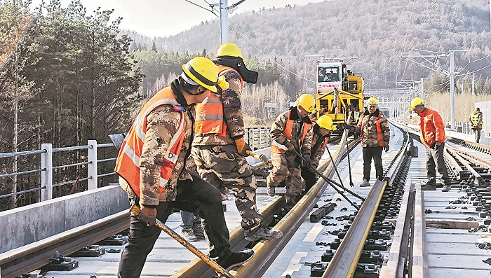 目前,沈白高铁吉林段TJ-6标铺轨施工正如火如荼进行。面对冬季施工条件艰苦、轨道精调技术要求高、工期紧迫等挑战,中铁二十三局集团沈白高铁项目部采取挂图作战、分线包干、责任到人的办法,各工种无缝衔接协同推进,掀起冬季轨道施工会战热潮,为明年沈白高铁联调联试创造条件。