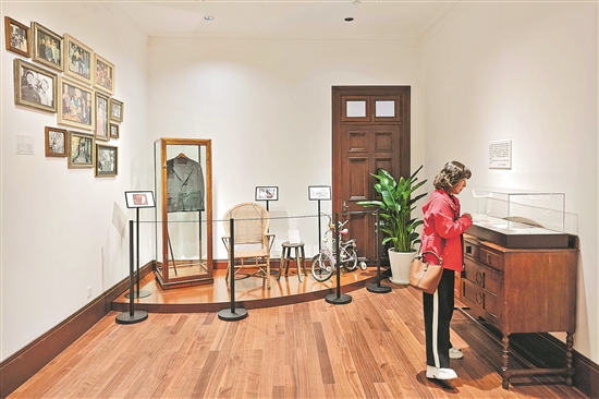 11月28日,观众在上海巴金图书馆参观“巴金与上海文献图片展”。日前,在中国当代文学巨匠巴金诞辰120周年之际,巴金图书馆开馆。图书馆以沉浸式氛围展陈大批图片、实物、手稿、作品、信件、各版本藏书等,其中不少实物文献是首度展出。视觉中国 供图