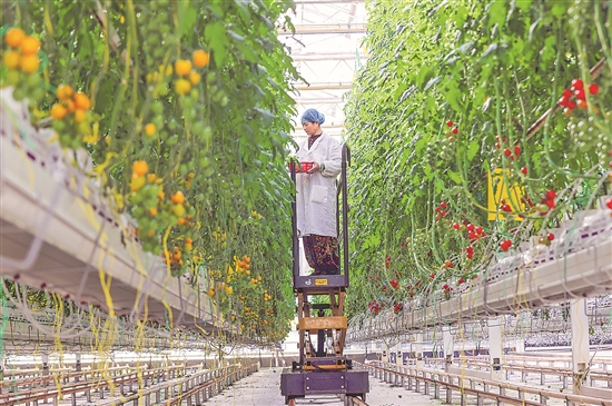 12月2日,在浙江省湖州市德清县阜溪街道龙胜村一家蔬菜工厂,工人在智能温室采摘彩色小番茄。该蔬菜工厂以种植番茄为主,应用无土立体栽培、冬季加温、水肥自动化微喷等现代农业先进技术,鲜果采收期可延长到8个月左右,产量与效益双提升,促进群众增收致富,助力乡村振兴。