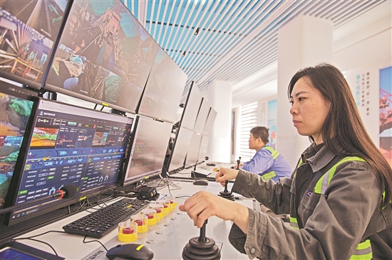 11月29日,浙江宁波舟山港北仑港区矿石码头首位斗轮机女司机胡蒙蝶远程控制两台斗轮机作业。该码头斗装班去年10月对两台斗轮机进行全面升级,引入北斗RTK定位、三维激光扫描、雷达检测、数字红外高清枪机、实时建模等先进技术,实现远控自动化作业,一人可远程操控多台设备,作业效率和安全性大为提高。