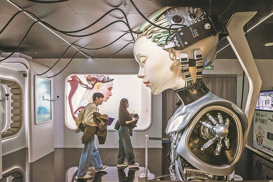 12月4日,北京,EDCC艺云数字艺术中心(王府井),观众在观看《灵境·未来灵感世界》展览。据了解,该展览通过AIGC、8K超高清、交互传感、VR、裸眼3D等数字技术,融合中国传统文化和西方优秀文化IP,打造沉浸式、参与式的数字艺术馆,为公众提供丰富的数字文化大餐。本报记者 蔚可任 摄