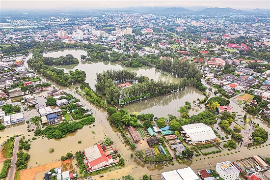 泰国内政部防灾减灾厅日前公布,11月22日以来,泰国南部一些地区连降暴雨,在10个府引发洪涝灾害,已造成25人死亡,超过66万户居民受影响。图为近日在泰国南部也拉府拍摄的遭遇洪水侵袭的区域。新华社发