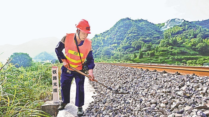 金温货线是浙江省交通集团金温铁道公司管理的“三线”铁路之一,是山多、水多、地质复杂的山区铁路。为确保安全,目前留有一支21人的巡道工队伍,现年57岁的徐长华就是其中一员。