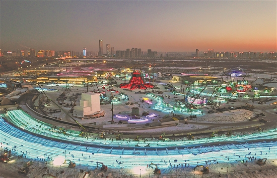 日前,第二十六届哈尔滨冰雪大世界开启冰建施工,万余名冰建工人、近千台机械作业设备陆续进场,在保障安全和工程质量的前提下,全力推进景观建设。新华社记者 王建威 摄