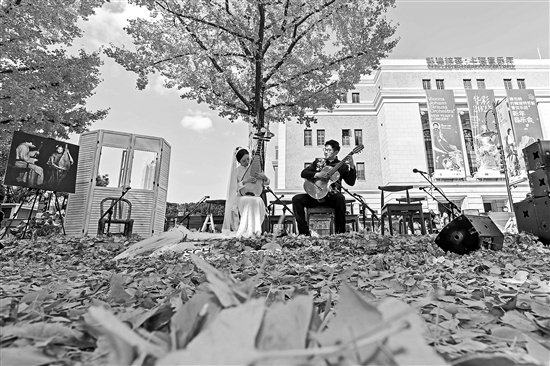 12月8日,一年一度的“银杏音乐会”在上海音乐厅南广场举行。在银杏树下,音乐家们倾情演绎,为市民带来沉浸式海派情境艺术盛宴。从2013年起,上海音乐厅利用银杏自然景观,每年策划不同主题的音乐会,逐渐形成“银杏音乐会”这一户外音乐会品牌,以预约方式免费向公众开放。