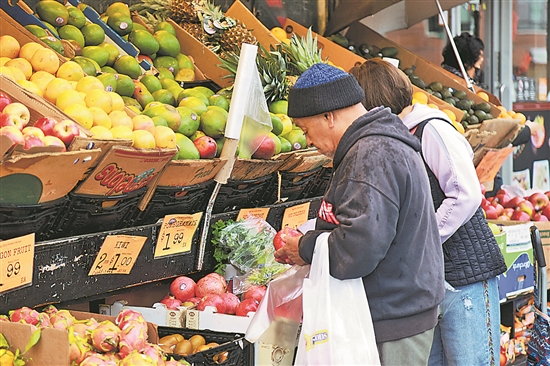 美国劳工部近日公布的数据显示,11月美国消费者价格指数(CPI)环比增长0.3%,涨幅较10月扩大0.1个百分点。图为12月11日,顾客在美国纽约一家超市挑选水果。