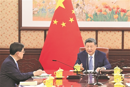 12月13日,国家主席习近平在中南海会见来京述职的香港特别行政区行政长官李家超。新华社记者 谢环驰 摄