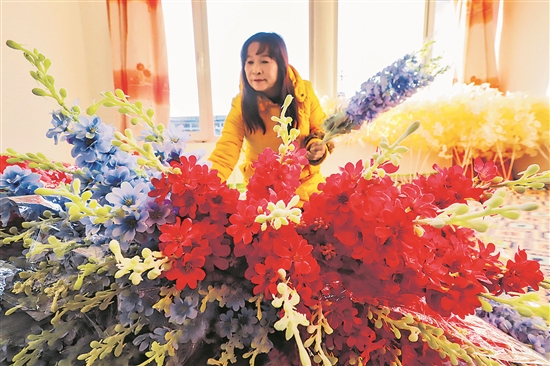 近年来,河北省遵化市兴旺寨镇积极发展出口仿真花卉手工制作,让大家居家绑扎、粘制仿真花卉,实现居家工作增收。