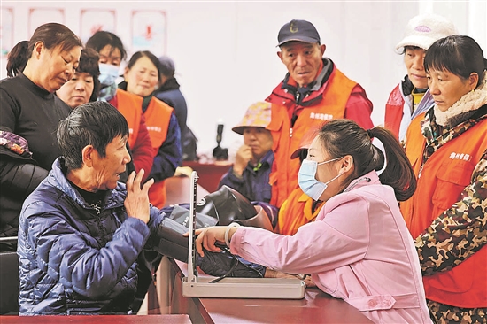 12月11日,江苏省连云港市连云区海州湾街道总工会联合连云区妇幼保健所,在营山社区开展“暖心义诊 守护健康”活动。医务人员为环卫工人量血压、测血糖,进行健康检查,指导正确用药,普及冬季养生知识,让他们在家门口享受到贴心、周到、便利的诊疗服务。本报通讯员 朱华南 李敏艺 摄
