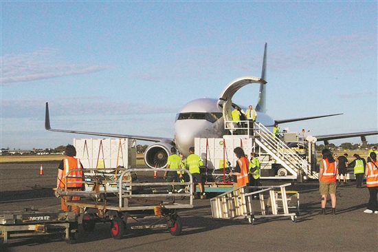 当地时间12月15日,大熊猫“星秋”“怡兰”搭乘专机抵达澳大利亚阿德莱德。“星秋”“怡兰”14日从中国大熊猫保护研究中心都江堰基地出发,在成都双流国际机场搭乘专机前往澳大利亚。新华社发 (吕薇 摄)