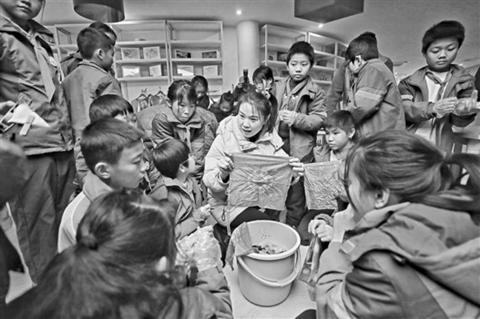 12月13日,江西省萍乡市湘东区艺江源研学空间内,黄堂小学的学生正在体验非遗扎染技艺。湘东区不仅是“中国民间文化艺术之乡”,还是全国首批文化产业赋能乡村振兴试点县区。2020年11月,“零799艺术区”落户江口,湘东区充分利用“零799艺术”区独特艺术资源,大力发展艺术研学之路,鼓励学生、艺术家、村民三方互动交流。本报记者 杨登峰 摄