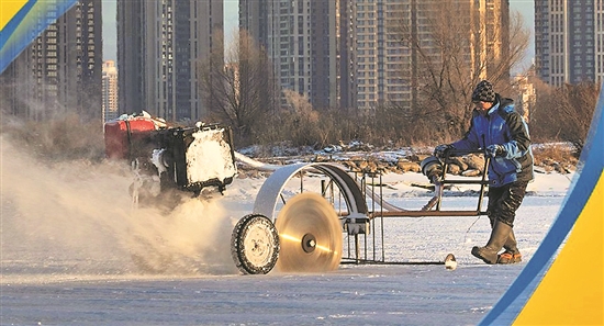 12月初的哈尔滨,最低温度已降至零下20摄氏度,松花江面冰雪皑皑,正是采冰的好时节。