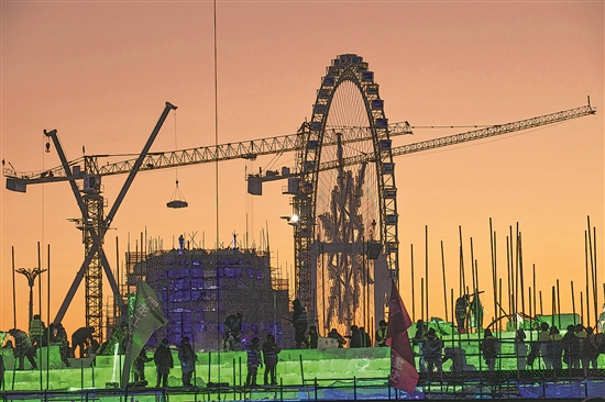 12月8日,处于加速建设期的哈尔滨冰雪大世界。本届冰雪大世界以“冰雪同梦 亚洲同心”为主题,园区总体规划面积达到100万平方米,使用30万立方米的冰和雪打造,是历届之最。