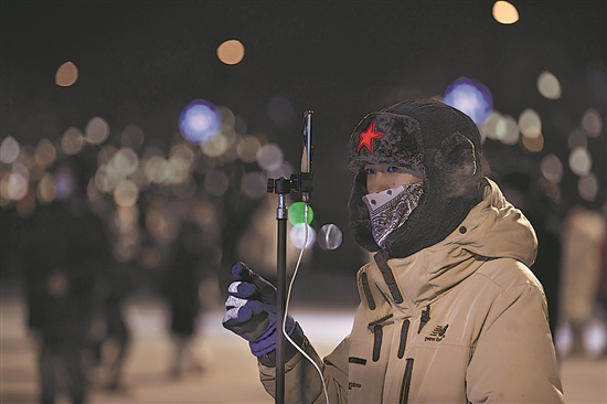 冰雪大世界外面,最近每天都有很多本地自媒体博主现场直播,在寒风中一站就是两三个小时,向外地游客介绍冰雪大世界建设的最新消息。
