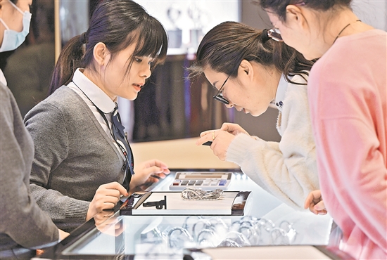 12月21日,顾客在海南省海口市日月广场免税店选购手表。据海口海关统计,今年以来,海口海关“即购即提”提货方式免税购物总金额超30亿元,150余万人次选择以“即购即提”方式提货。新华社记者 郭程 摄