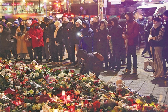当地时间12月21日,人们在德国马格德堡悼念圣诞市场遭袭击事件遇难者。