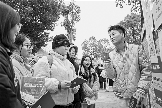 12月23日,在长沙师范学院举办的2025届毕业生冬季招聘会上,招聘人员(右一)向求职学生介绍岗位信息。当日,长沙师范学院举办“暖冬送岗,职引未来”2025届毕业生冬季招聘会。250余家参会主体推出1200多个工作岗位,涉及教育、产品制造、媒体等多个行业。