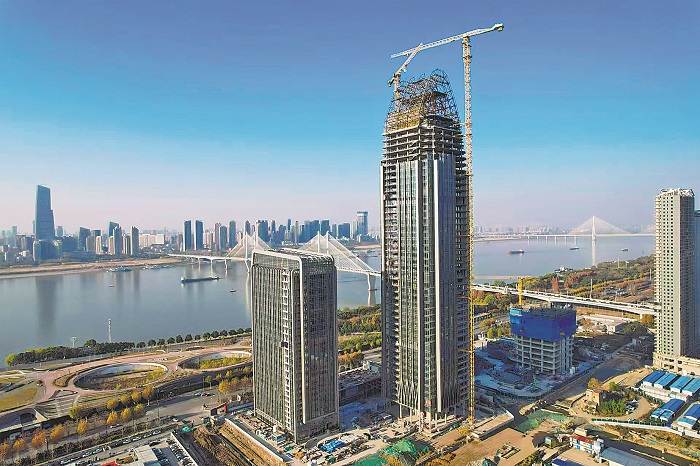 近日,由中铁建设承建的长江沿岸铁路集团总部T1塔楼钢结构塔冠主桁架顺利合龙。