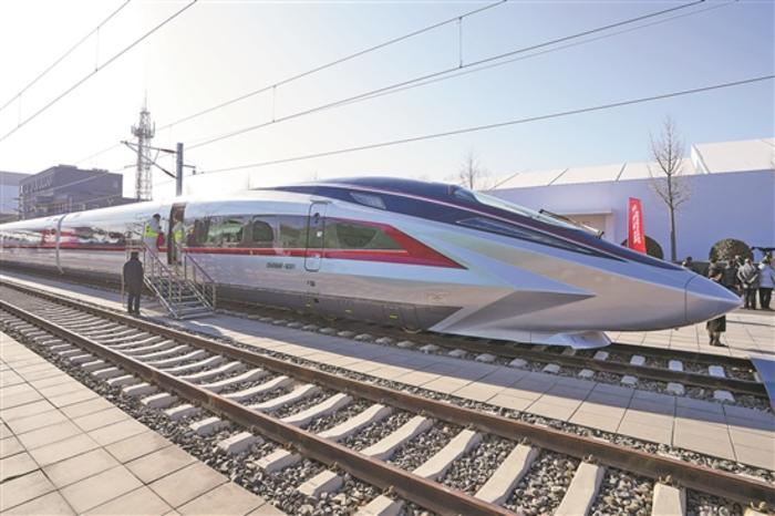 据介绍,CR450动车组样车运营速度、运行能耗、车内噪声、制动距离等主要指标处于国际领先水平。一是更高速。试验时速450公里,运营时速400公里,让旅客出行更加便捷高效。二是更安全。制动距离更短、运行稳定性更优。三是更节能。动车组整车运行阻力降低22%,减重10%。四是更舒适。舒适度指标更优,车内噪声降低2分贝,客室服务空间增加4%,可为旅客提供多样化、便利化、个性化服务。