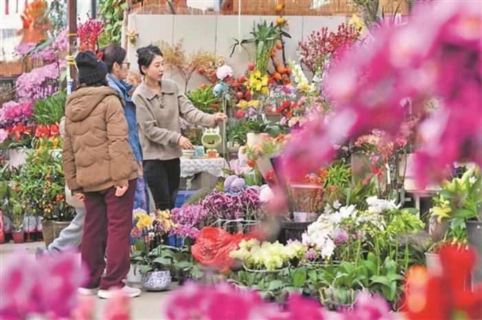 12月28日,在山东省青岛市城阳花木交易市场,商户为市民推荐鲜花。元旦临近,该交易市场内盛开的百余种鲜花带来新年气息,人们徜徉花市、选购鲜花。本报通讯员 王海滨 摄