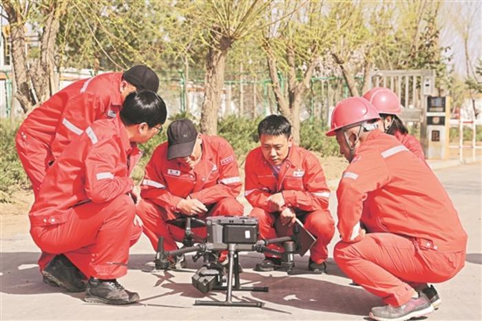气井巡护队第一次用无人机巡检。 邵帅 摄
