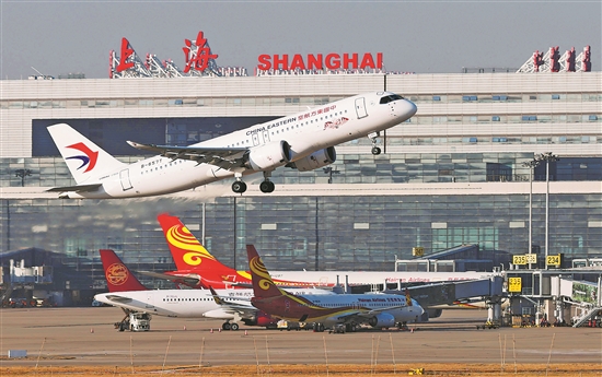 1月1日,东航C919执飞的MU721航班从上海虹桥机场起飞。