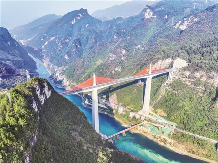 这是1月1日拍摄的渝湘复线高速公路磨寨乌江特大桥(无人机照片)。
