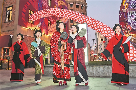 1月2日在上海市“今潮8弄”蛇年灯会拍摄的国风巡游表演。