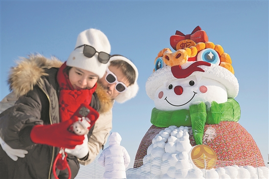 新年伊始,“冰城”哈尔滨在市区打造了多个雪人景观供游客参观游玩。这些造型各异的雪人仿佛是“冰城”的冬日使者,展现冰雪文化的魅力。新华社记者 张涛 摄