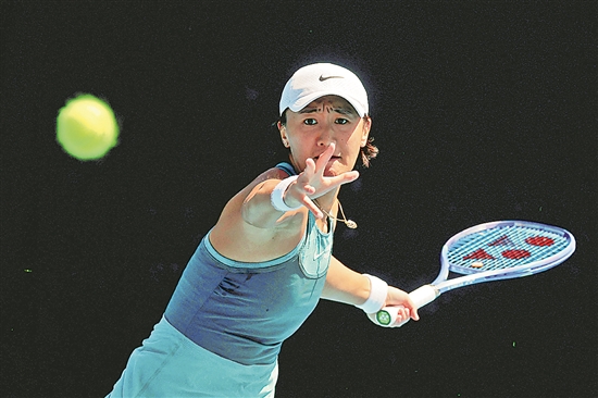 当地时间1月14日,中国选手王曦雨在澳大利亚网球公开赛女单首轮比赛中,以6:1、7:5战胜奥地利选手格拉巴赫,晋级第二轮。图为王曦雨在比赛中回球。