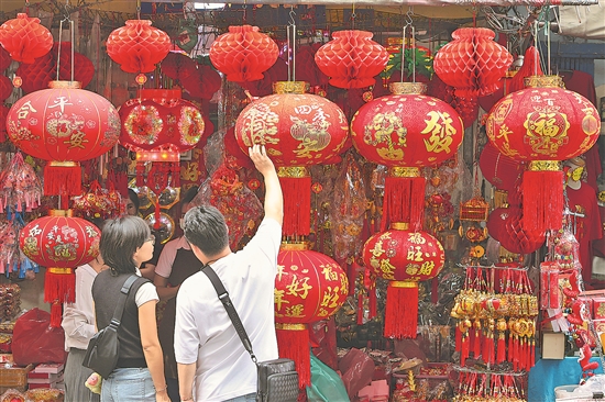 近日,在泰国曼谷唐人街,当地居民选购蛇年春节装饰品。