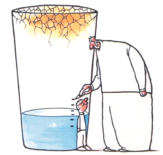 父亲为了孩子的成长每天做记录,深切地显示着关怀之情,随着时间推移,“杯子”里的水资源却逐步减少,这意味什么?