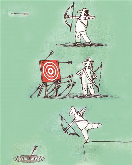 漫画委婉地批评了那些好大喜功投机取巧的人。浮夸过后未能取得一点成绩,给人留下令人不齿的笑柄。