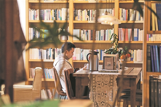 坐在乡村阅读室窗前,读诗、品咖啡、望雪山……这样恬淡的日子,在四川蒲江县的明月村已是寻常。图为近日游客在明月村“远家”文化空间读书品茶。 新华社记者 杨进 摄