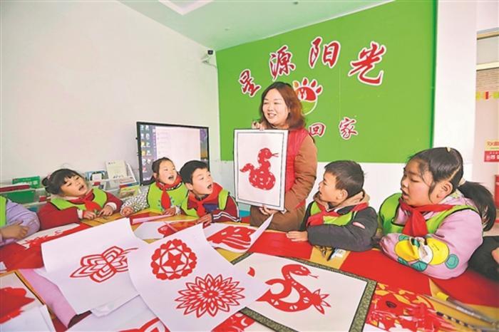 1月17日,湖北省竹山县麻家渡镇星源阳光儿童托管家园开展传承非遗文化剪纸主题活动。