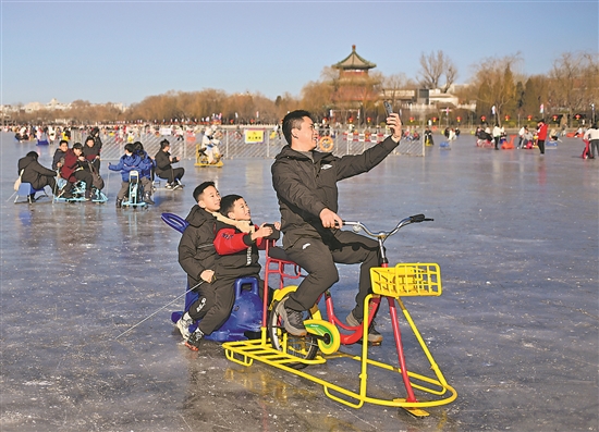 当日上午北京天气晴好,许多游客来到什刹海冰场体验冰车、冰上自行车等运动游乐项目,乐享冰趣。 新华社记者 张晨霖 摄