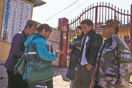 “他的邮件都是送到家的,对待我们都是跟家里人一样。”在前进村,村民克秀叁一边修房子,一边告诉记者。旁边的村民和才生补充:“二三月份我们需要种子,他也会帮忙送上来。”
