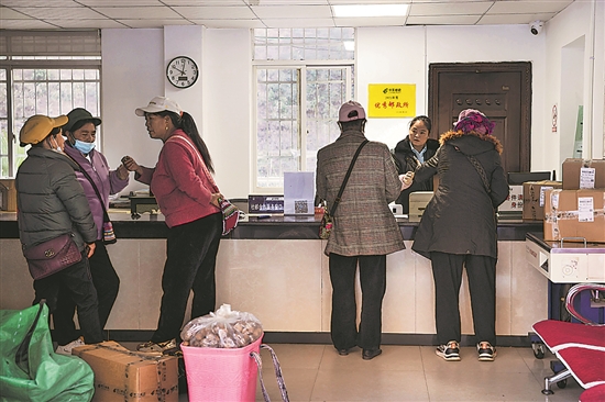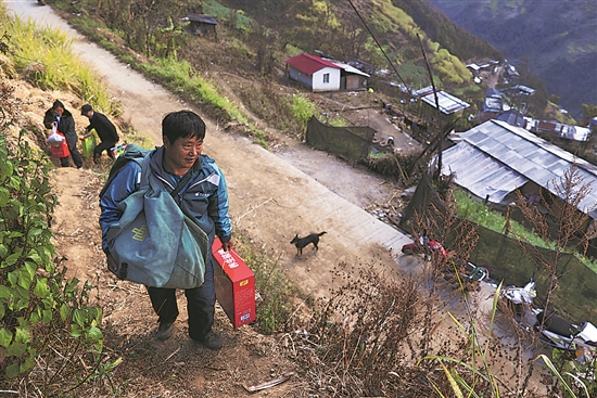 1月17日,密晓琴在邮政所给傈僳族群众寄送快递。春节将近,很多人将当地的土特产核桃、蜂蜜等寄给远方的亲人。