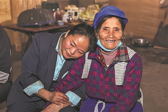 1月12日傍晚,前进村,桑南才的妻子密晓琴(图左)偎依在婆婆肩头。
