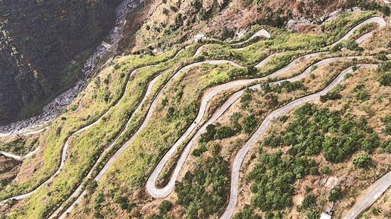 1月14日,赤耐乃村蜿蜒曲折的盘山路。