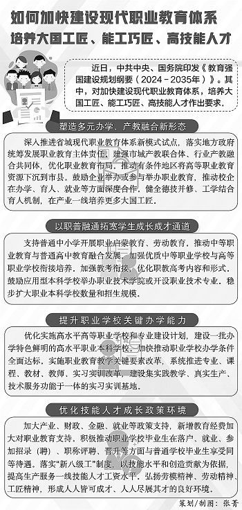 如何加快建设现代职业教育体系培养大国工匠、能工巧匠、高技能人才