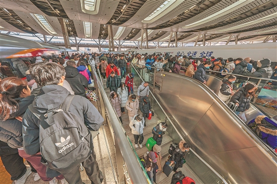 当日是春节假期的最后一天,北京南站人潮涌动,迎来返程高峰。