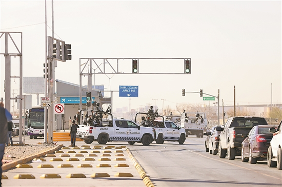 当地时间2月4日,首批墨西哥国民警卫队员抵达墨北部奇瓦瓦州华雷斯市等地,以加强边境安全。