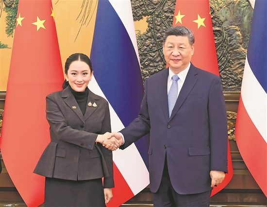 新华社北京2月6日电(记者董雪 邵艺博)2月6日上午,国家主席习近平在北京人民大会堂会见来华进行正式访问的泰国总理佩通坦。