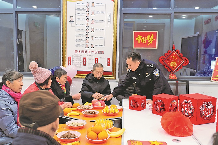 春节前夕,湖北武汉东湖新技术开发区当代国际花园社区“张文昌警务室”,全国优秀人民警察张文昌把10位空巢老人接过来,一起高高兴兴过大年。