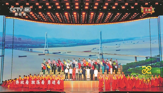 38位来自各行各业的劳动者代表亮相央视春晚演唱歌曲《伟业》。 图片来源:视频截图