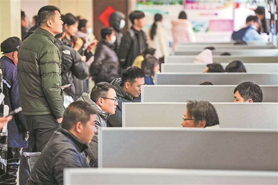 当日,由南京市人力资源和社会保障局主办的“春风送岗促就业 贴心服务保用工”2025年新春综合招聘会在南京人才大厦举行。近百家单位提供2000多个就业岗位,涵盖软件和信息服务、电力、智能制造装备、人力资源、文娱等领域。