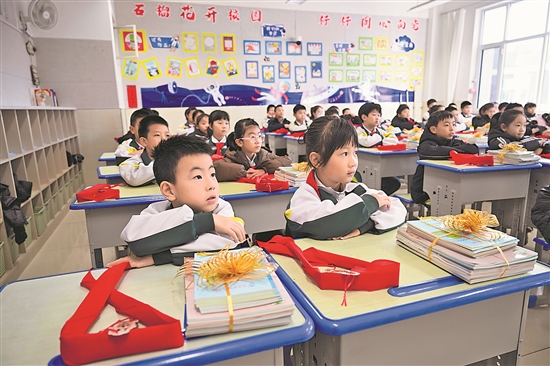 当日,部分地区中小学迎来开学季,学生们返回学校、领取教材,参加开学第一课等活动,开启新学期。