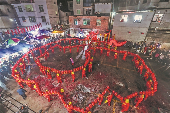 “赶十八”始于明朝永乐年间,至今已有600多年的历史。儒洪村祖先将正月十五元宵节改至正月十八,故成为古村儒洪村特有的元宵文化。新华社记者 徐昱 摄